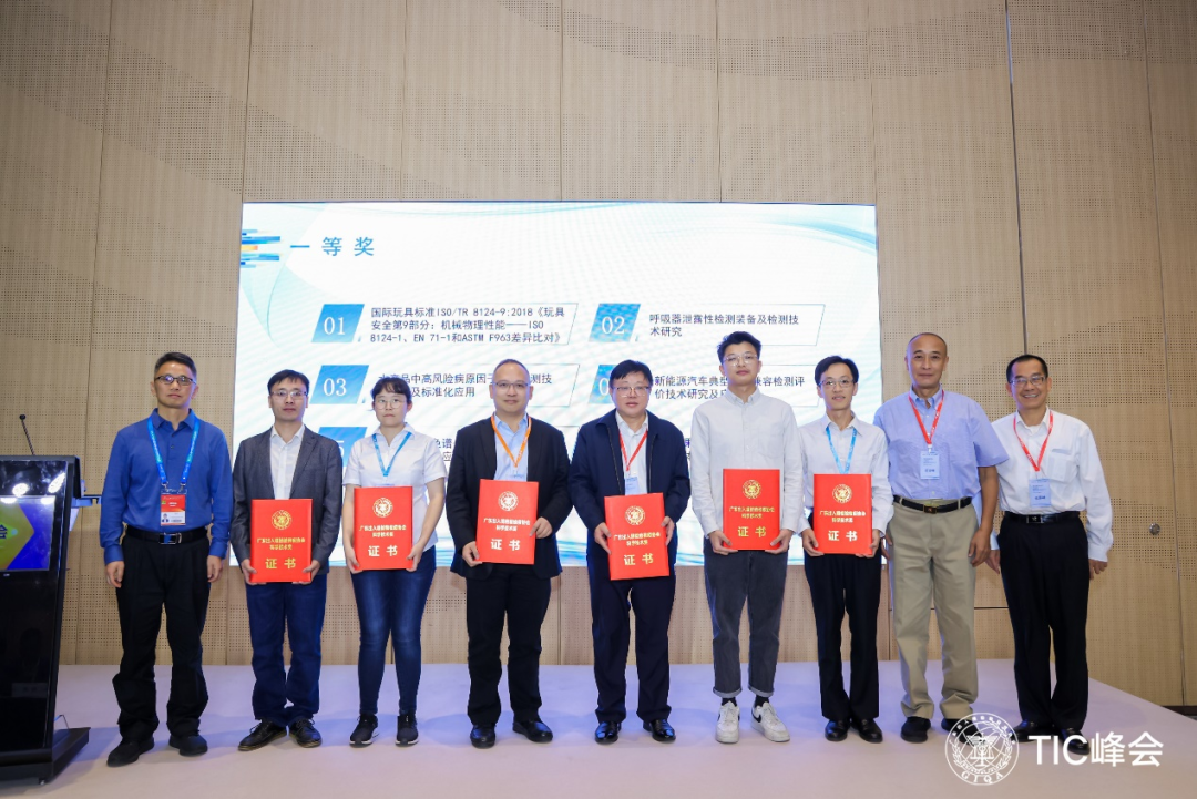 点击分享 为表彰在检验检测及相关领域的新发现、新原理、新方法、新应用研究中取得优秀成果的科技工作者,进一步扩大该项科学技术奖的影响力,由广东出入境检验检疫协会牵头组织的科学技术奖颁奖大会于2023年11月15日下午在深圳国际会展中心隆重召开。广检集团党委副书记、总经理、副董事长黄勇和广技公司总经理邓成亮作为特邀嘉宾及获奖代表出席了会议。