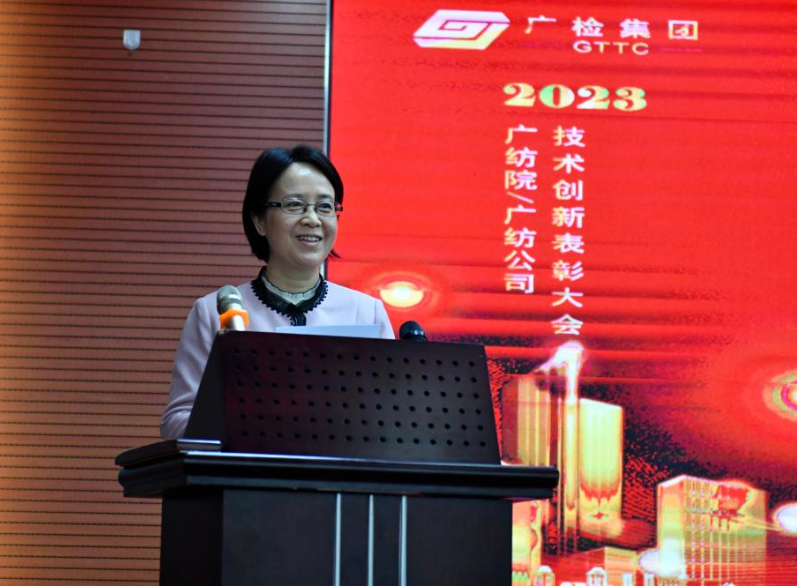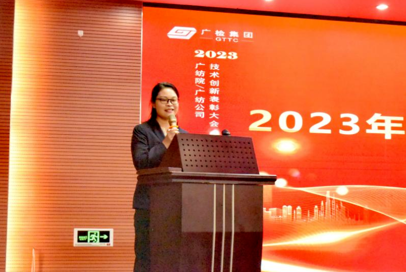 紧接着,广纺院技术负责人李小红对我院的技术进步及技术创新工作进行了总结汇报,介绍了我院能力建设、企业需求、政府技术支撑、推广应用等总体情况,并展示了2023年承担的各项目及技术创新成效,播放科技成果风采展示视频。