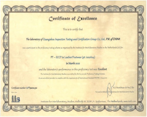 点击分享 近日,广检集团广纺院收到荷兰IIS(Institute for Interlaboratory Studies)颁发的“短链氯化石蜡(pt:iis22A04)”能力验证证书,广纺院获得满意结果。