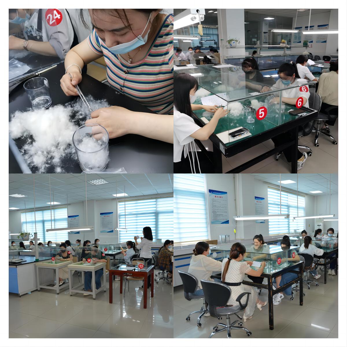 培训活动采取“理论+实操+现场交流”的方式进行。上午由广检集团广纺院羽绒检测中心部长戈强胜和技术专家郭文分别为学员分享《羽绒品质大数据分析》和讲解《羽绒品质检测》,下午同步开展种类鉴别+羽绒成分分析实操演练比武和现场交流。此次培训模式新颖、流程紧凑、干货满满,各学员学习热情高涨,理论培训现场座无虚席。本次培训帮助企业及时熟悉标准的要求及规范检测手法,提升企业羽绒实验室检测质量控制水平,提高企业检验人才的业务能力。现场问卷调查结果显示,学员满意度达到100%。