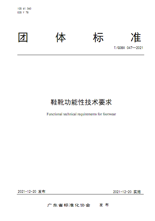 点击分享 12月20日,由广州检验检测认证集团有限公司牵头制定的团体标准《鞋靴功能性技术要求》,经广东省标准化协会正式发布。
