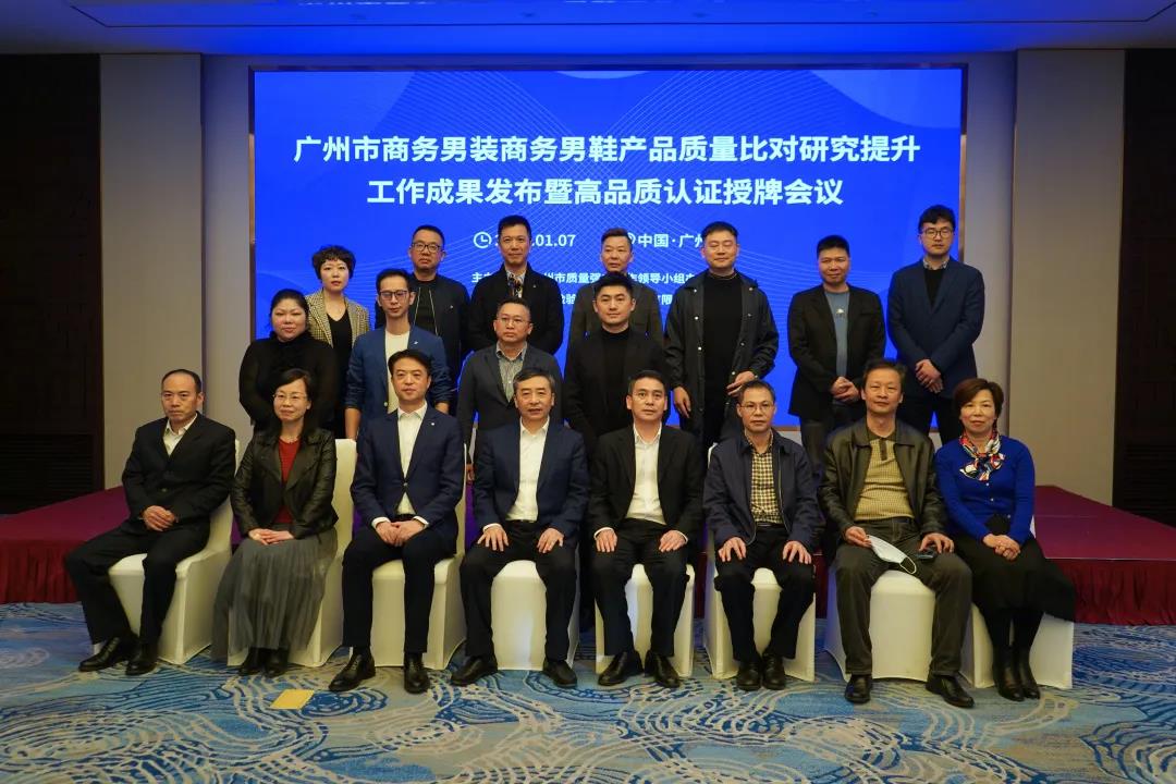点击分享 1月7日,由广州市质量强市办主办、广检集团承办的“广州市商务男装商务男鞋产品质量比对研究提升工作成果发布暨高品质认证授牌会议”在广东迎宾馆隆重举行。广州市质量强市办、广州市市场监管局、广检集团、中国服装协会、广东省标准化协会及相关企业、媒体机构的参会代表共同出席了此次活动。